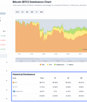 On Coingecko, the surge isn’t limited to Bitcoin. Some of the best cryptos to buy are trending higher, lifting the total market cap above $4.1T. Presently, Bitcoin commands over +56% of the total market share. Meanwhile, Ethereum, in second place, has slipped, controlling just +12% of the total market cap.