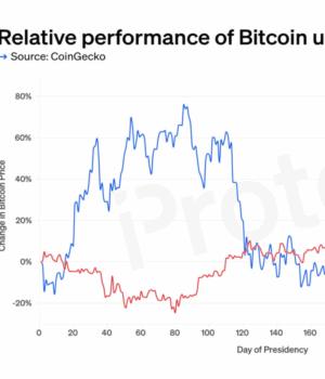 Donald Trump has embraced BTC, but despite that, it’s seen a much smaller relative appreciation under his leadership than it did under Biden.
