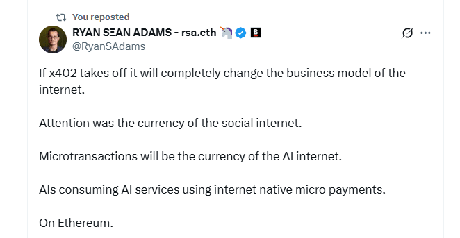One analyst on X said if x402 takes over, it will fundamentally change the “business model of the internet” that web3 is based on.