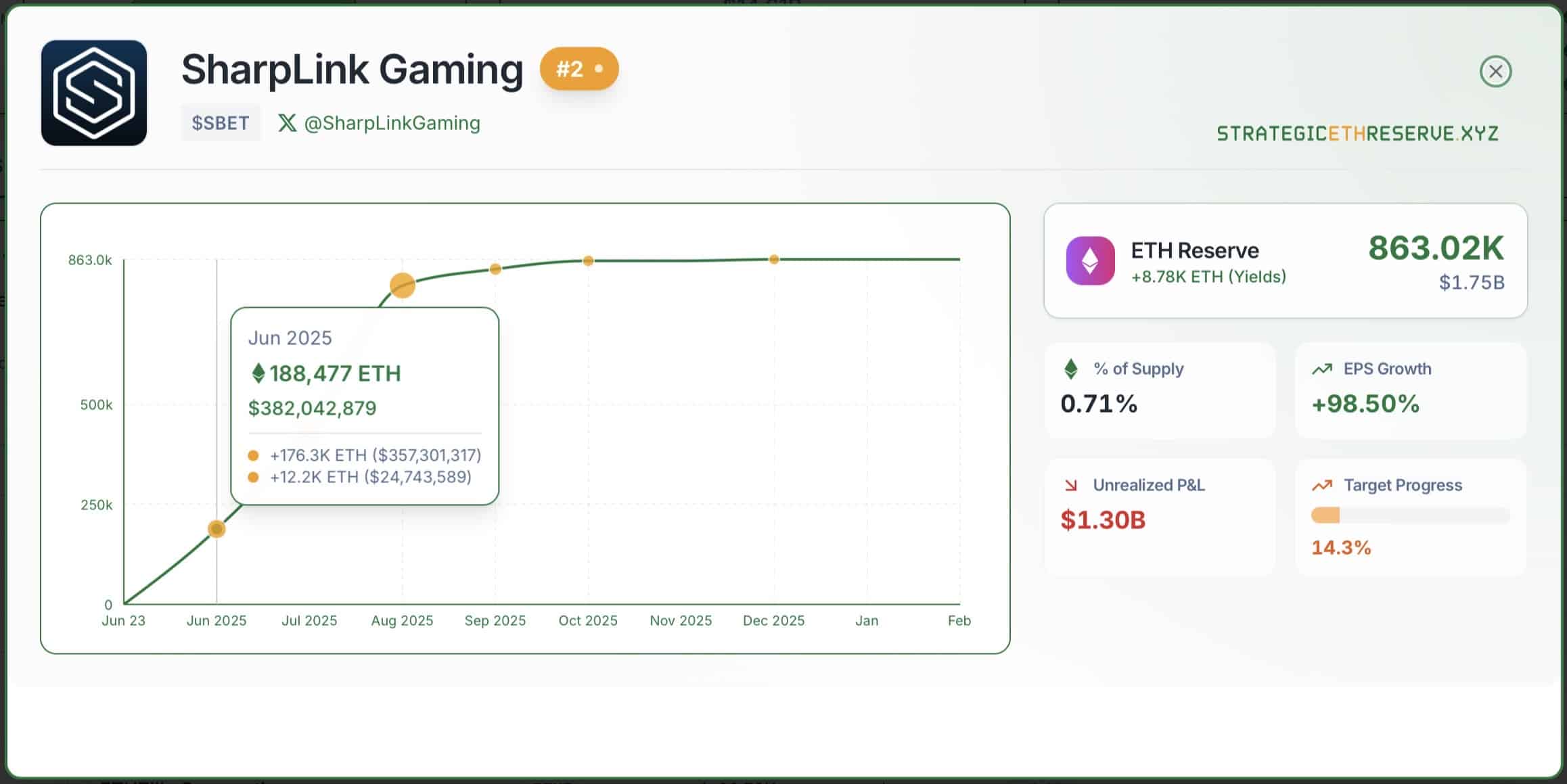 This dynamic highlights why Ethereum often outperforms during periods of capital rotation. While Bitcoin sits in a vault, staked Ethereum works. For SBET, the goal isn’t just to hold ETH, but to increase the amount of ETH represented by each share of stock.