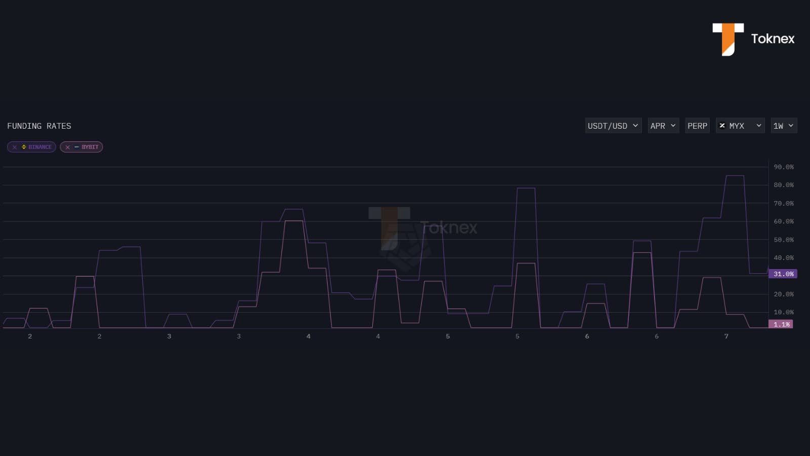 (Source – MYX perpetual contract funding rates on Binance and Bybit – Tokenix)