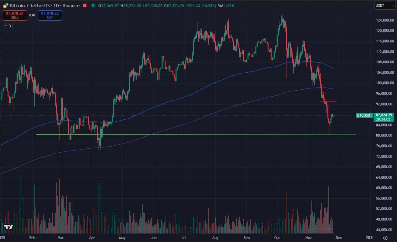 The question dominating trader sentiment today is simple: why is the crypto market crashing, and whether Bitcoin can hold the line after a brutal multi-week correction. As of late November 2025, BTC USD has dropped from its $126,000 ATH to lows near $80K, wiping out more than $600Bn in market value.